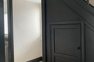 Complete interior redecoration including wall and ceiling painting, woodwork finishing, staircase detailing, and final clean finish throughout the property.